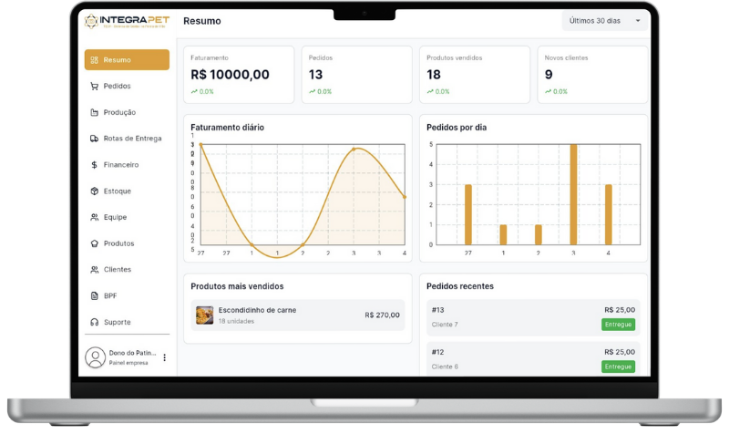Com o INTEGRAPET TECH, sua empresa tem acesso a um sistema pensado para simplificar a operação e conectar sua marca ao mercado de forma inteligente. Intuitivo, moderno e criado por quem vive o setor na prática.